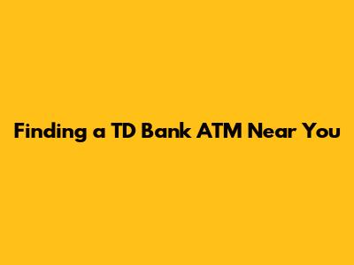 Finding a TD Bank ATM Near You