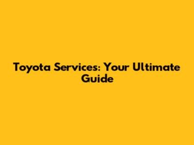 Toyota Services: Your Ultimate Guide