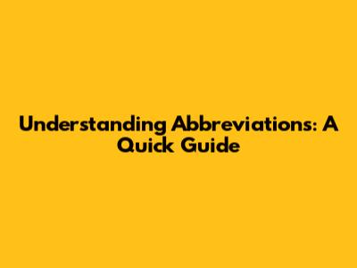 Understanding Abbreviations: A Quick Guide