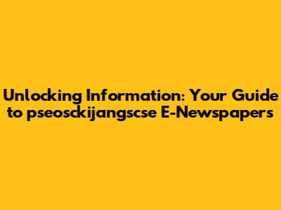 Unlocking Information: Your Guide To Pseosckijangscse E-Newspapers