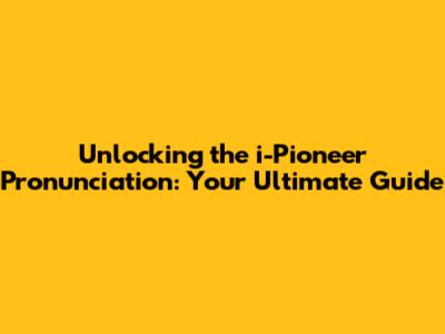 Unlocking The I-Pioneer Pronunciation: Your Ultimate Guide