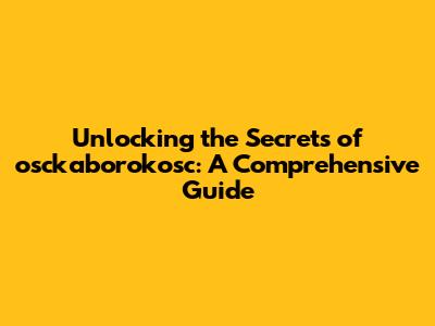 Unlocking The Secrets Of Osckaborokosc: A Comprehensive Guide