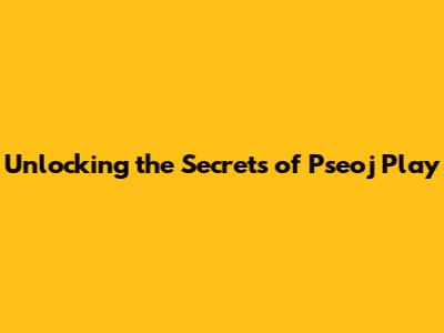 Unlocking The Secrets Of Pseoj Play
