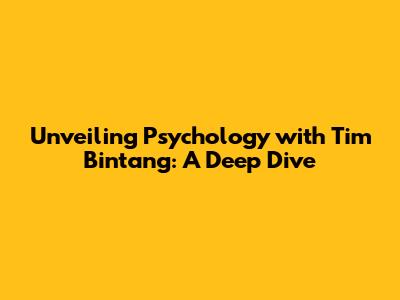 Unveiling Psychology With Tim Bintang: A Deep Dive