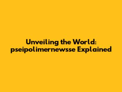 Unveiling The World: Pseipolimernewsse Explained